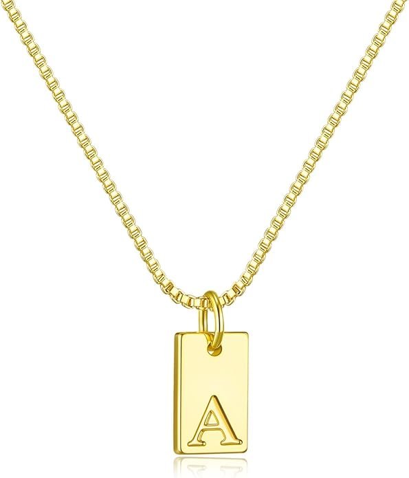 Initial Necklaces for Women 14K Gold Plated Letter Necklace Dainty Gold Name Necklace Personalized Initial Tag Pendant Necklace for Women Trendy Gold Jewelry