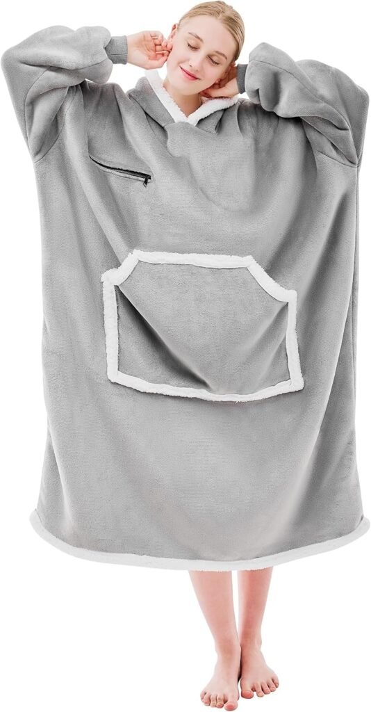 IFNOW Wearable Blanket Hoodie,Oversized Sherpa Fleece Hooded Sweatshirt with Eye Mask and Pocket,Cozy Giant Blanket Hoodie with Sleeves for Adults,Birthday Christmas Gfit for Women Mom Girlfriend,Grey