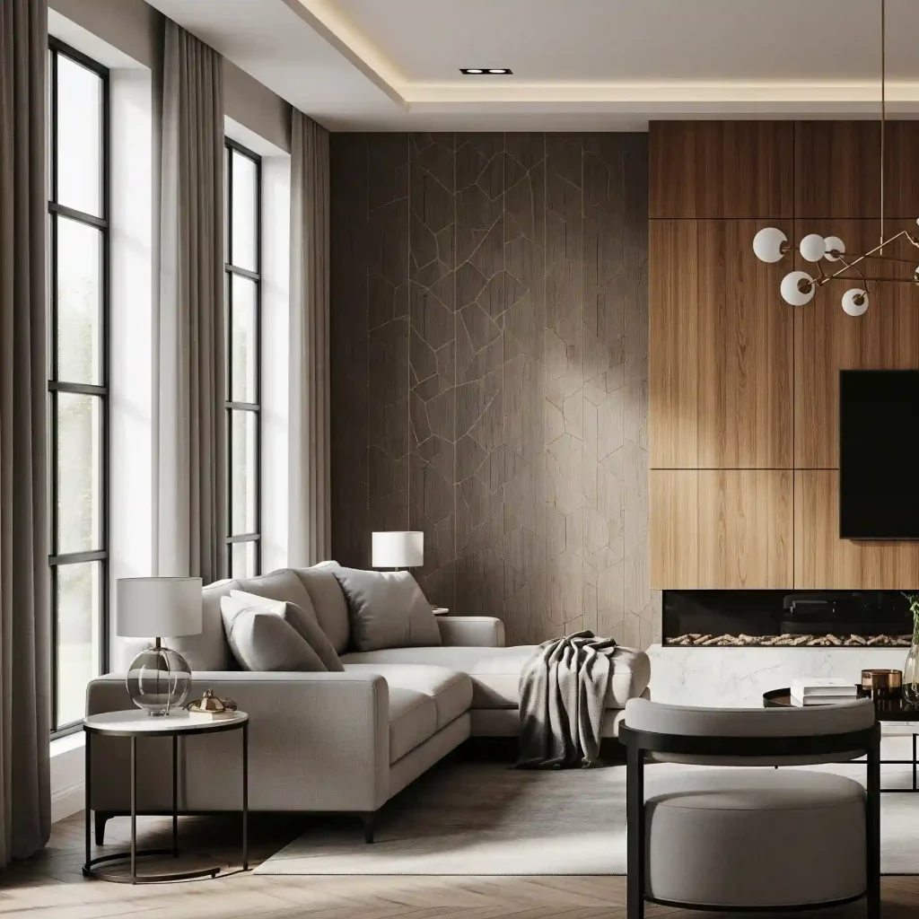 This image demonstrates how a well-chosen accent wall can add visual interest, texture, and a sense of luxury without overwhelming the room, perfect for a modern and sophisticated look.