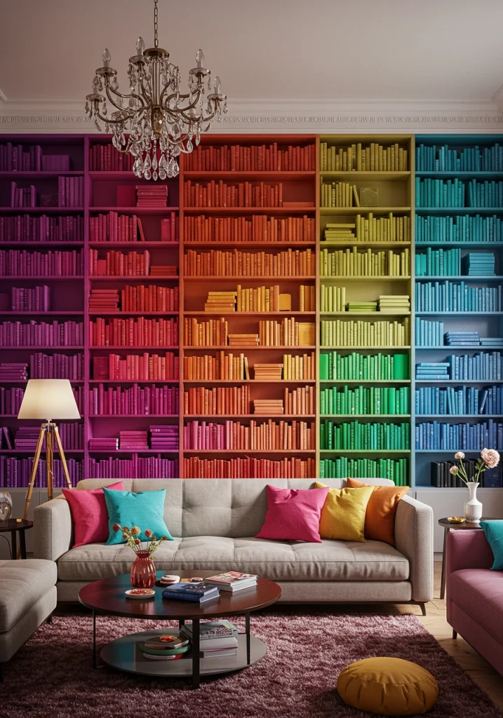 - Color-Code Your Books: The most high-impact look. Arrange all of your books according to the color of their spine, creating a beautiful, flowing, rainbow effect.