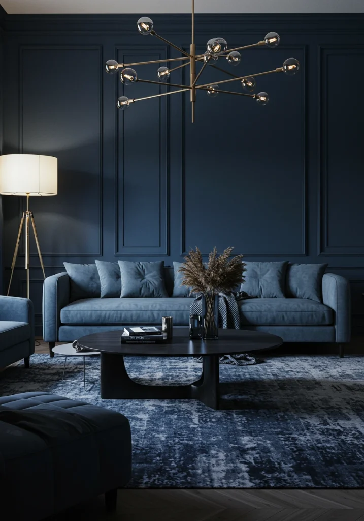 - Balance with Light: Pair the dark walls with a lighter-colored sofa (like a cream or a light gray) and a light-colored area rug to provide a point of high contrast.