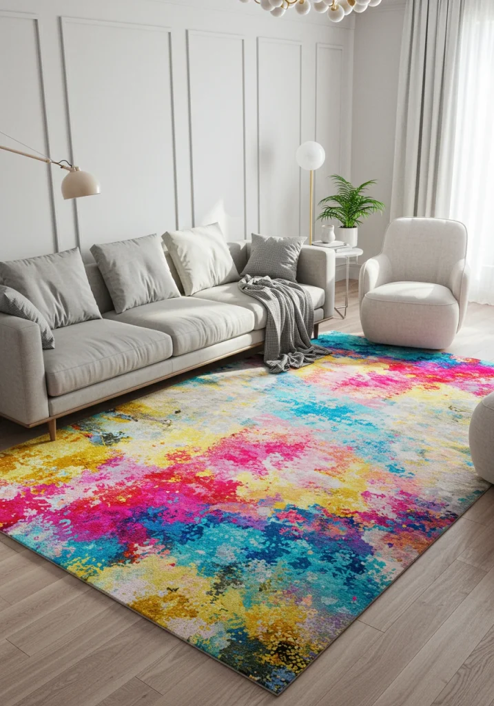 - Style: A vintage, overdyed Persian or Turkish rug can add a soulful, bohemian feel. A modern, abstract rug with a painterly, watercolor-like design can feel very artistic. A bold, geometric rug can feel more graphic and mid-century modern.
