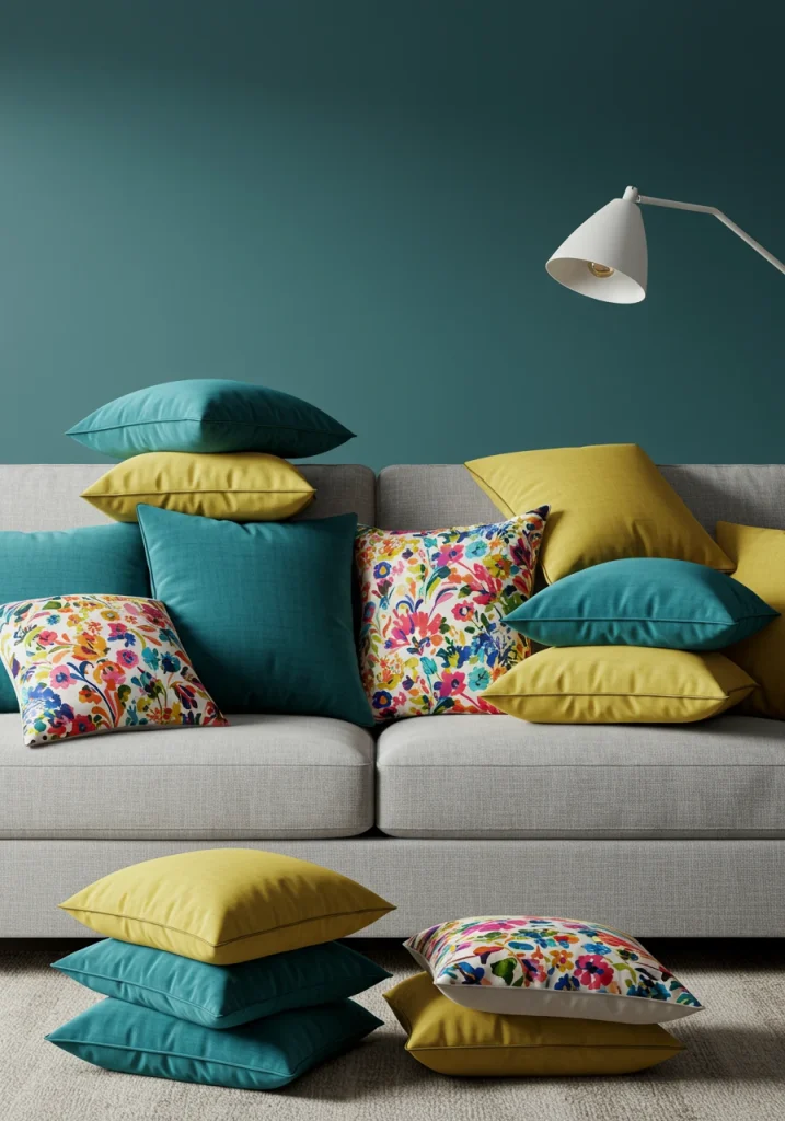 - Mix Solids and Patterns: Choose a few pillows in bold, solid colors, and mix them with a few that have a beautiful, multi-colored pattern.