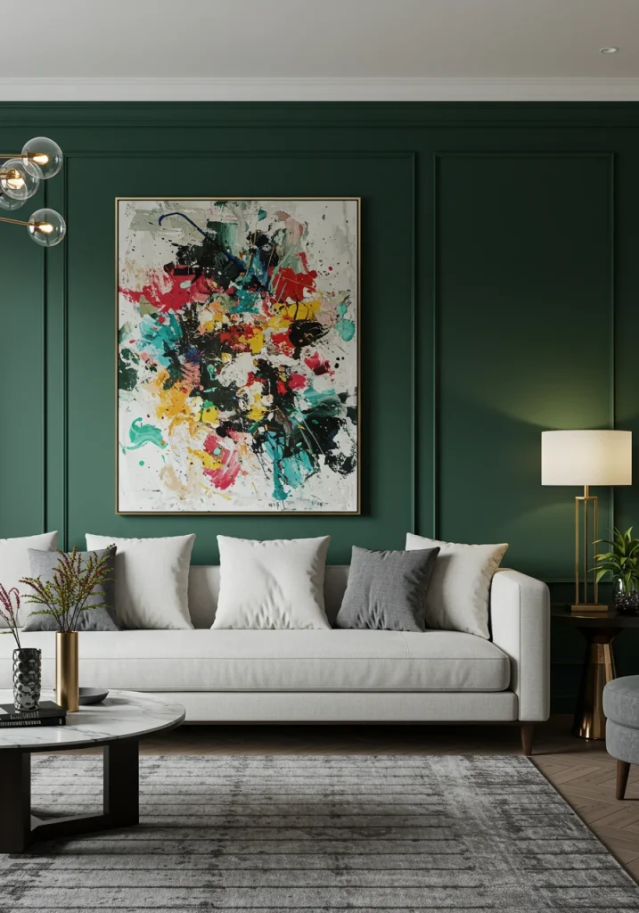 For a creative enhancement, instead of painting the entire wall, paint a large, graphic shape on your main wall. A large, painted circle or a tall, arched shape in a bold color behind your sofa can be a very creative and on-trend statement.
