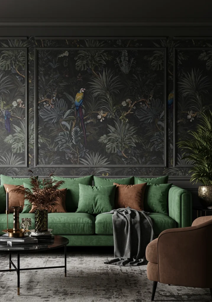 - Pattern: Look for large-scale botanicals, dramatic florals, a “jungle” or “forest” themed mural, or a bold, abstract, geometric print.