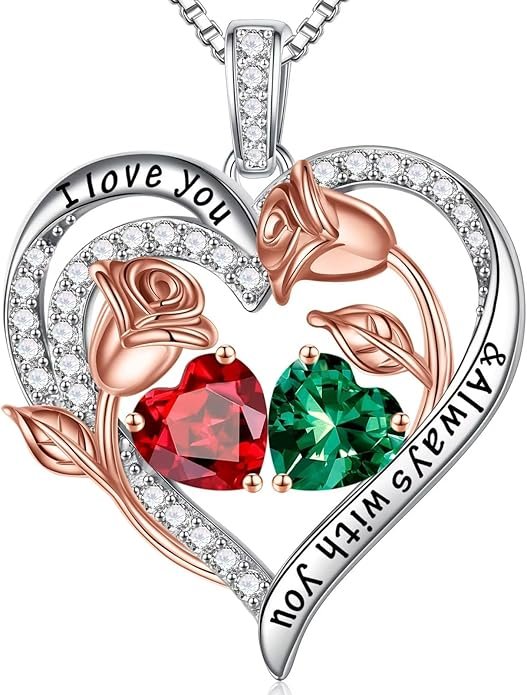 Iefil Christmas Gifts for Women Wife – 925 Sterling Silver Rose Heart Birthstone Necklace Birthday Anniversary Jewelry Gifts for Her Wife Mom Daughter