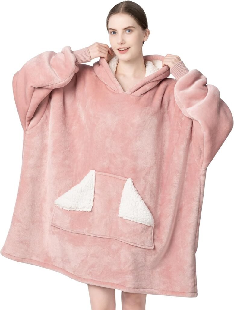 Touchat Wearable Blanket Hoodie, Oversized Sherpa Blanket Sweatshirt with Hood Pocket and Sleeves
