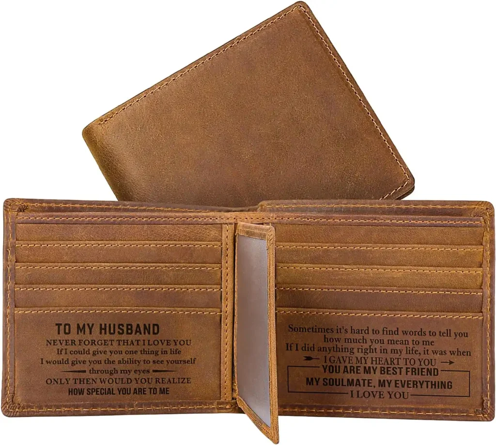 kullder Mens Wallet Engraved Leather Wallets Personalized Mens Gifts for Husband from Wife Custom Wallet for Man Anniversary Christmas Birthday gift
