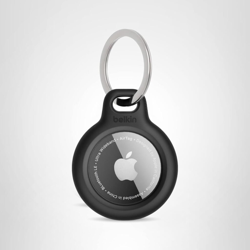 Belkin Apple AirTag Secure Holder with Key Ring – Durable, Scratch-Resistant Case with Open Face & Raised Edges – Protective AirTag Keychain Accessory for Keys, Pets, Luggage, & More – Black