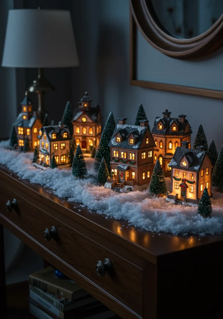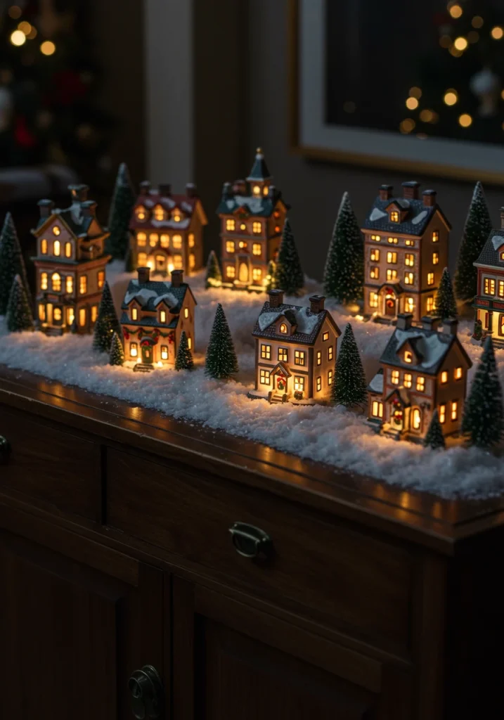 For an enhancement that adds a touch of modern sophistication, consider a collection of all-white, minimalist, ceramic, lighted houses instead of the more traditional, colorful versions. A monochrome, white village can be incredibly chic and magical.