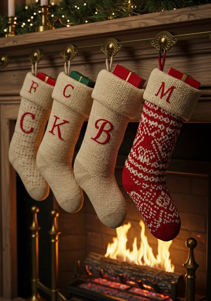 • The Style: A classic, chunky, hand-knit stocking is the ultimate in cozy charm. A needlepoint or a velvet stocking can feel more traditional and formal.