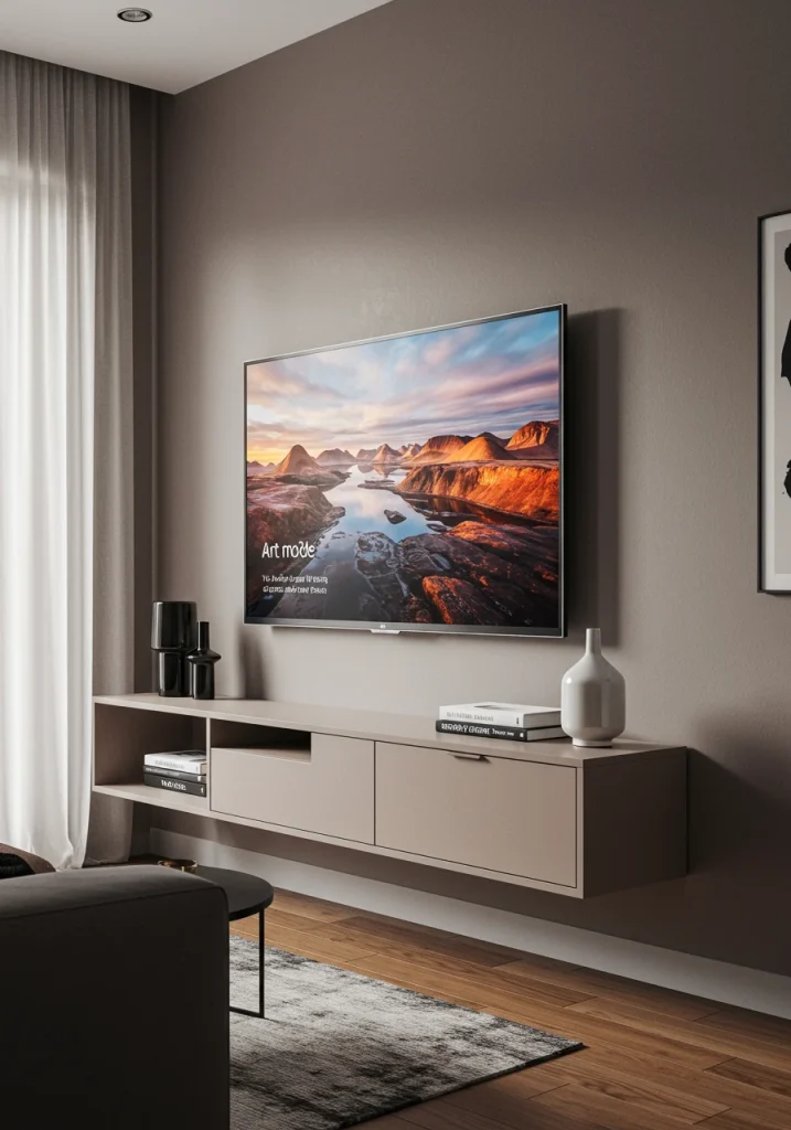 A key smart design trend for a small 2026 space. A large black TV screen can be a visual black hole. An Art TV (like the Samsung The Frame) is a game-changer. When off it displays a beautiful piece of art making your TV disappear into your stylish gallery wall.