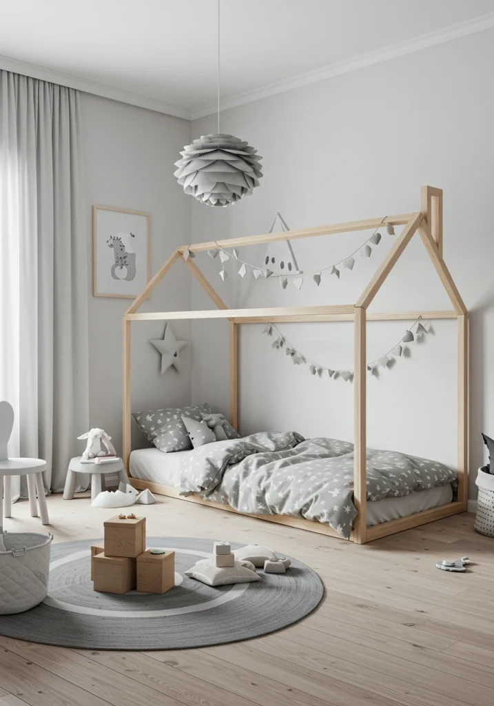 While bright, themed rooms are fun, a calm, serene, and minimalist, Scandinavian-inspired bedroom can also be a wonderful choice for a child. This style, with its focus on a simple, neutral color palette, natural materials, and a clutter-free environment, can create a very peaceful and restorative atmosphere that is perfect for promoting calm and restful sleep.