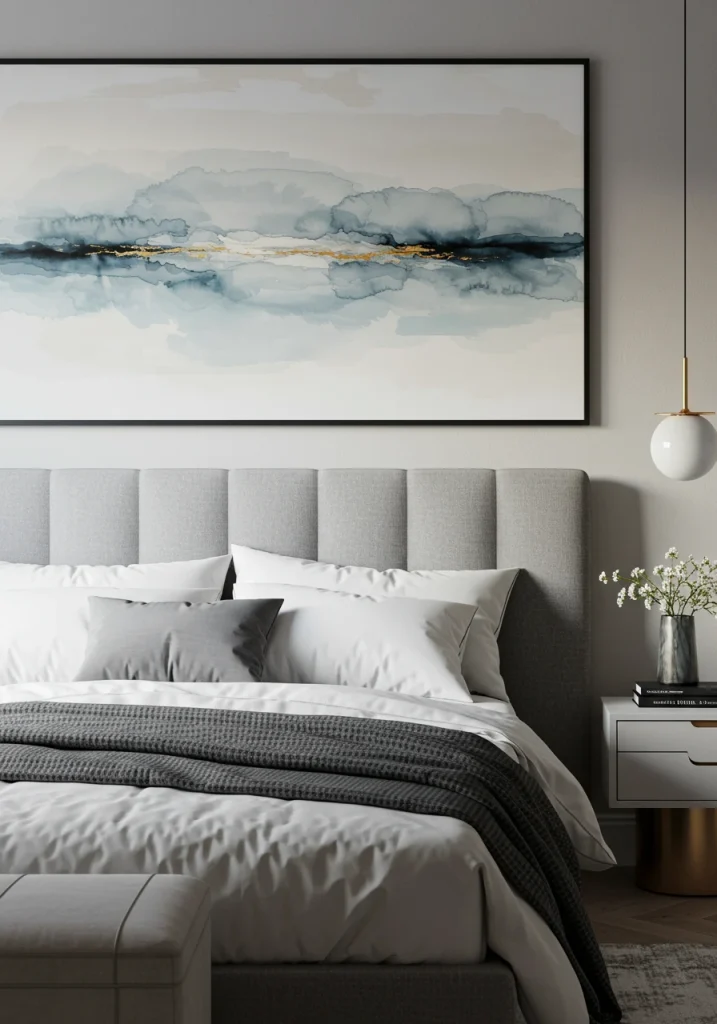 - Placement: A single, large, calming piece of art above the bed is a classic choice.