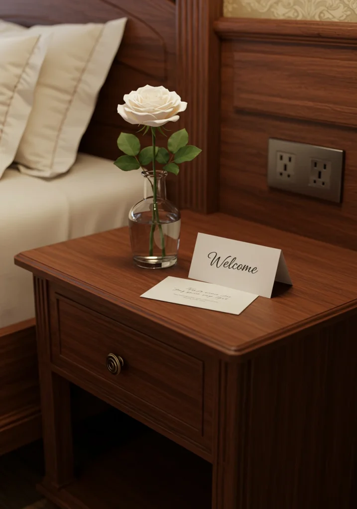 I always place a small bouquet of fresh, seasonal flowers on the nightstand or the dresser just before a guest arrives. It’s a classic and foolproof welcoming touch.