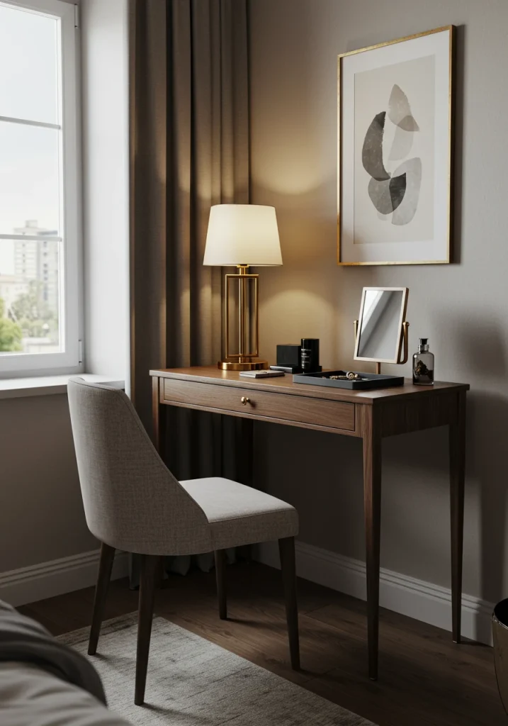 This doesn’t have to be a large, executive desk. I often use a slim, elegant console table that can double as a desk or a vanity.