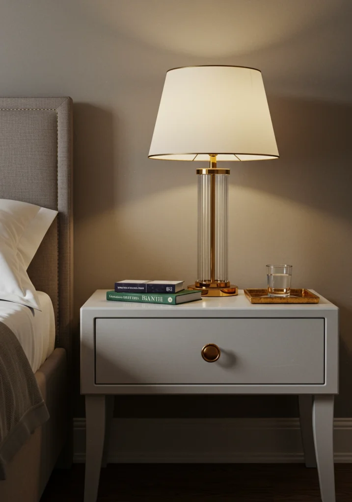 - Add Matching Lamps: Place a matching, elegant table lamp on each of the nightstands.