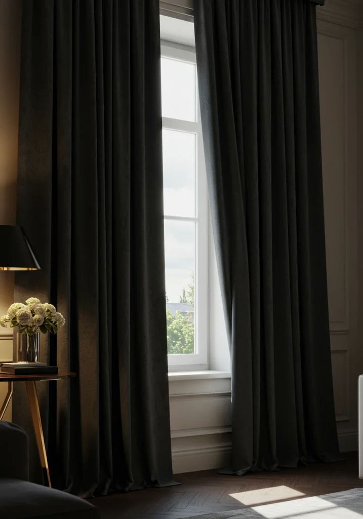 - Blackout Curtains: Choose beautiful, heavy, floor-to-ceiling curtain panels that have a dedicated blackout lining.