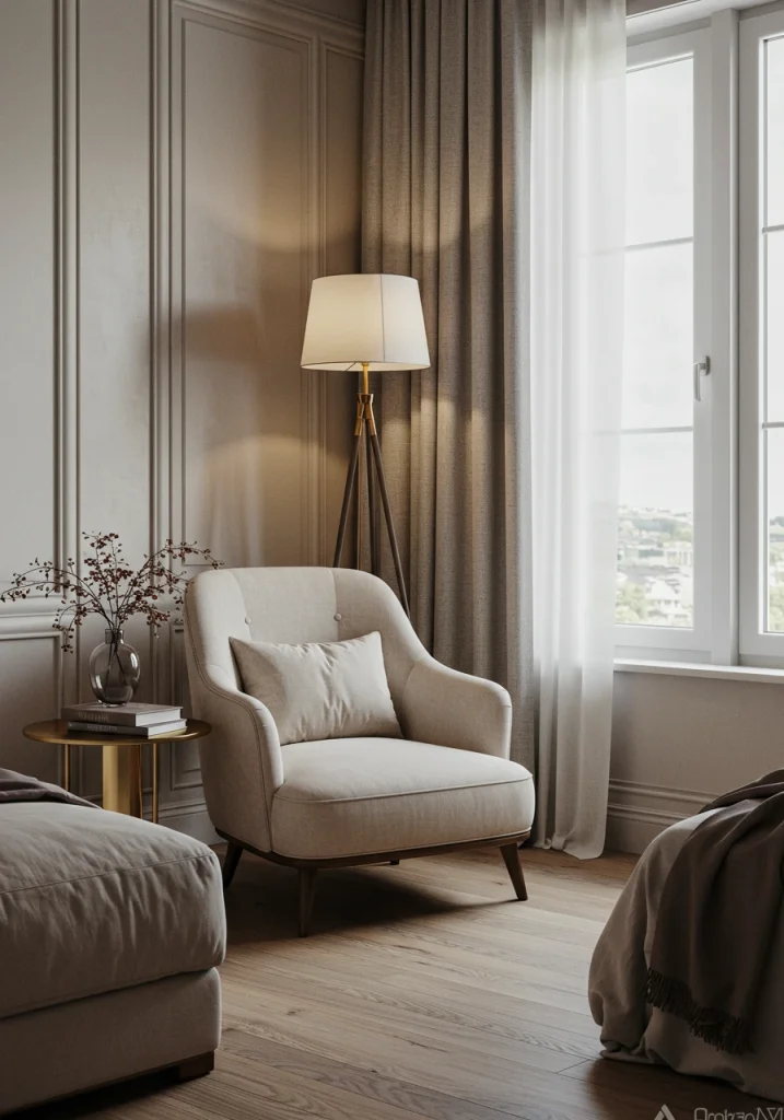 - The Seating: A single, comfortable, upholstered armchair is perfect. If you have more space, a small loveseat or a chaise lounge is even more luxurious.