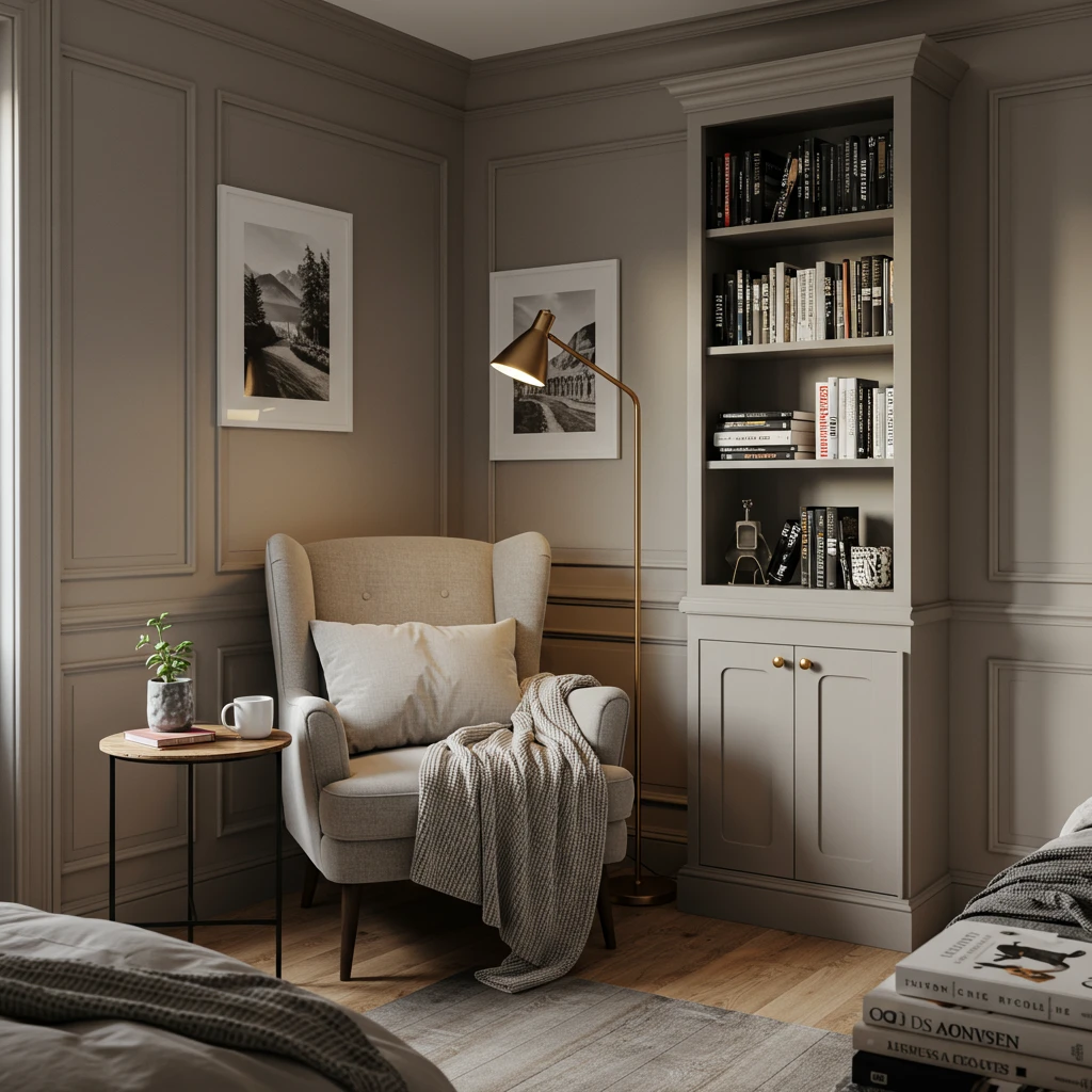 Add soft throw pillows, a warm blanket, and a stylish task lamp to create a perfect spot for literary adventures or simply unwinding with a cup of tea, fostering a personal escape within your sanctuary.