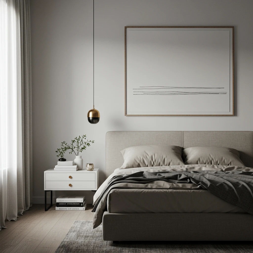 Keep nightstands and dressers clear of excess, allowing each chosen piece to stand out and contribute to a calm, visually expansive atmosphere. This design philosophy fosters tranquility and reduces visual noise, perfect for a restorative space.