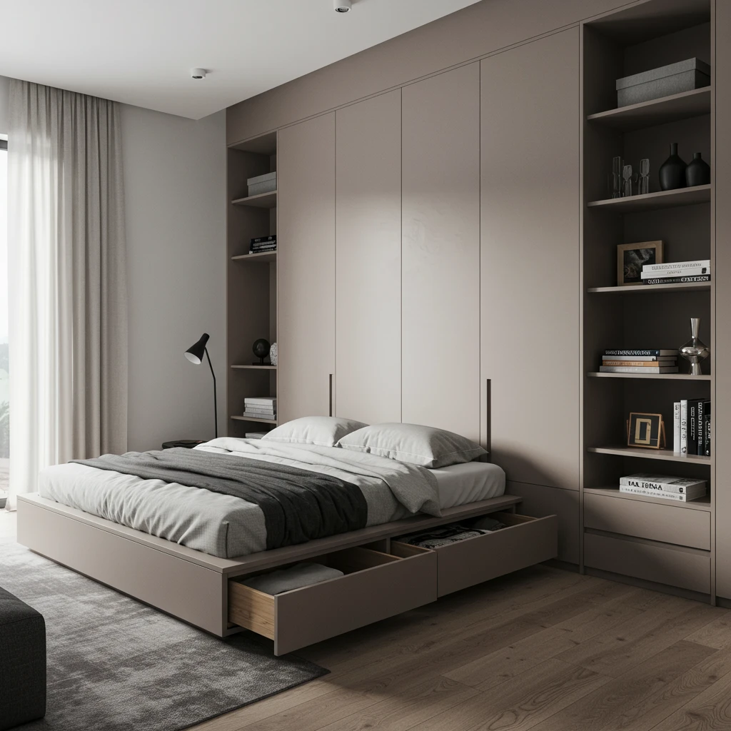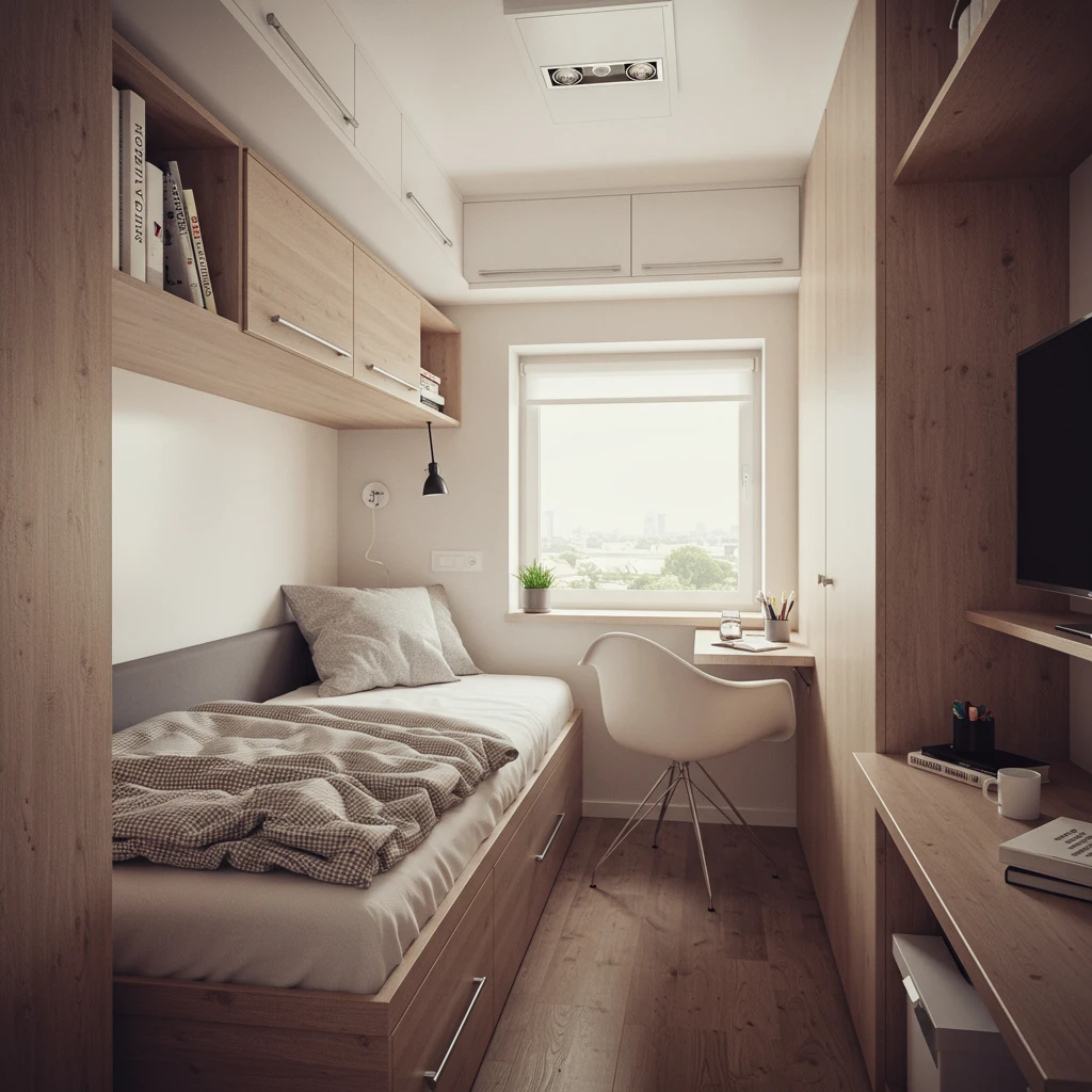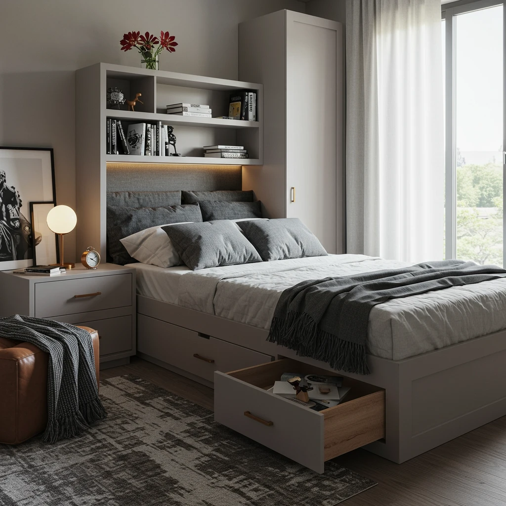 The goal is to create a highly functional and comfortable bedroom that maximizes utility without feeling cramped, making the most of limited square footage.