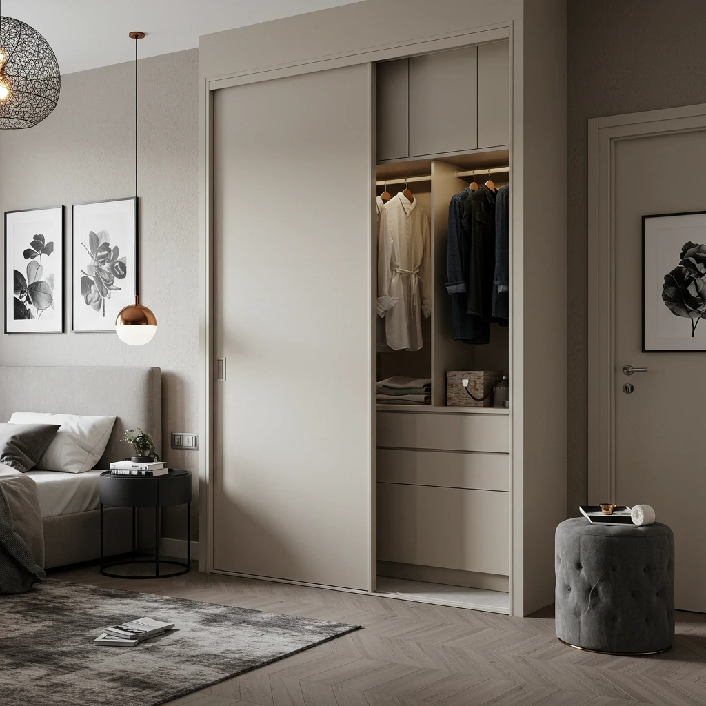 For 2025, sliding doors are an elegant and highly space-saving solution for closets and en-suite bathrooms, especially in smaller bedrooms. Unlike traditional swing doors that require clearance space, sliding doors glide smoothly along a track, maximizing usable floor area.