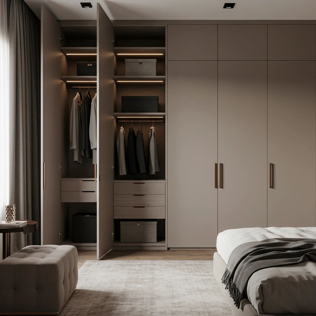 A truly luxurious bedroom in 2025 values order and tranquility. Implement integrated smart storage solutions that are seamlessly incorporated into the design, making clutter virtually invisible. Think built-in wardrobes with flush doors that blend into the wall, platform beds with cleverly hidden drawers, sleek floating shelves that incorporate lighting, and elegant dressers designed to maximize internal organization.