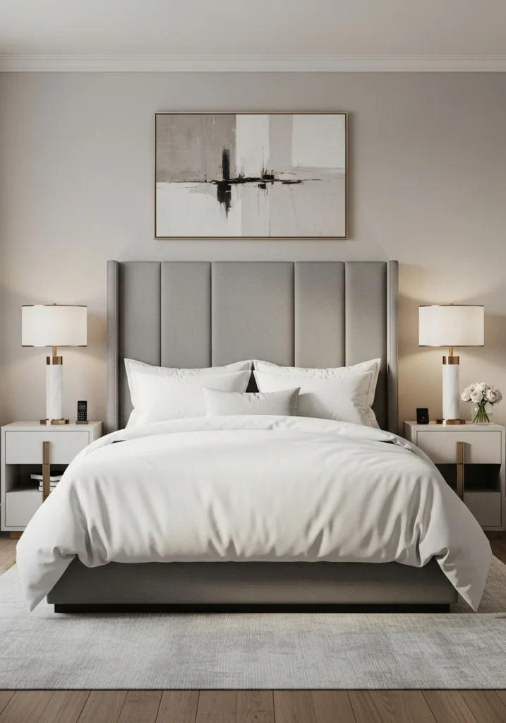 A tall, upholstered headboard in a beautiful fabric, like a velvet or a textural linen, can instantly make the room feel more luxurious and comfortable.