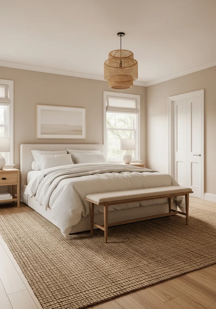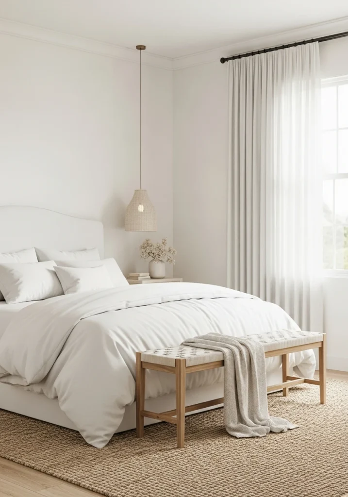 A top 2026 trend, this style blends the cozy simplicity of Scandinavian design with the calm, elegant minimalism of Japanese aesthetics. It’s the perfect, serene style for a guest room.