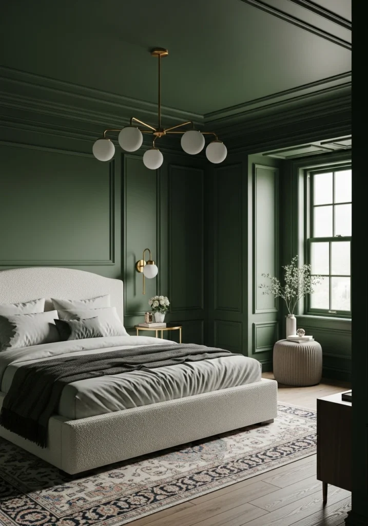 For a small or a large room, create a dramatic, cozy, and luxurious feel by painting all four walls a deep, moody color, like a rich forest green or a deep navy blue. This “color drenching” is a major 2026 trend.
