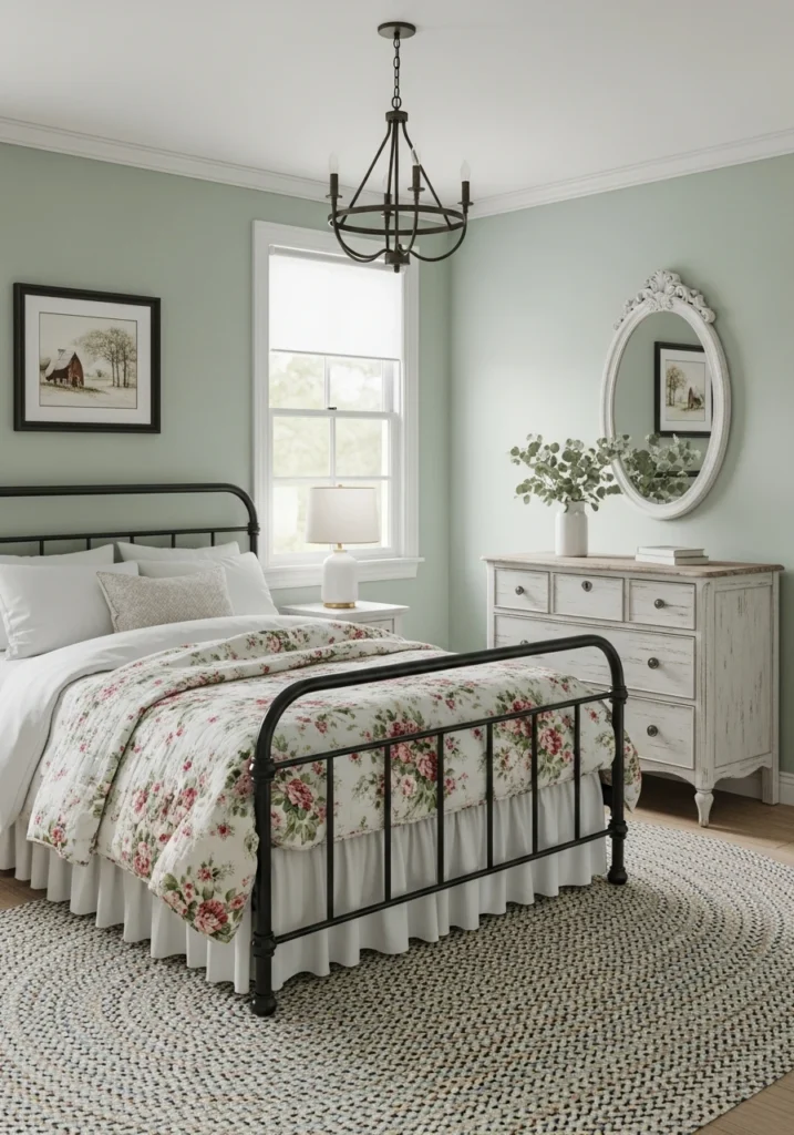 This is the evolution of the farmhouse style. It’s softer, more refined, and more personal. Pair a vintage-style, metal bed frame with soft, floral-print pillows, a distressed wood dresser, and a cozy, knit throw.