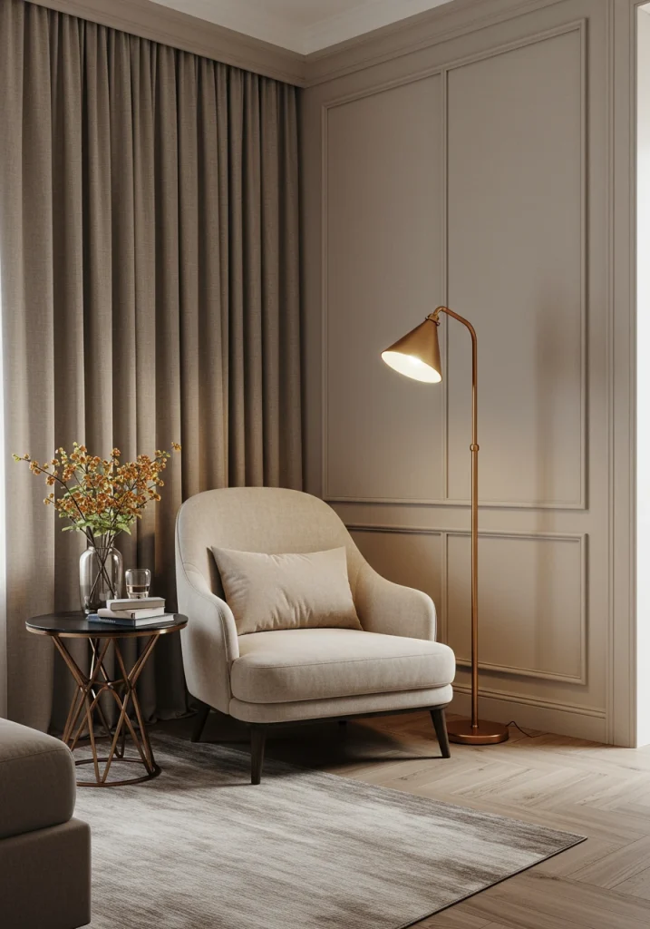 Move beyond cool grays. Use a warm earthy greige (a mix of gray and beige) on the walls. This sophisticated 2026 modern neutral is the perfect warm and inviting backdrop for any decor style.