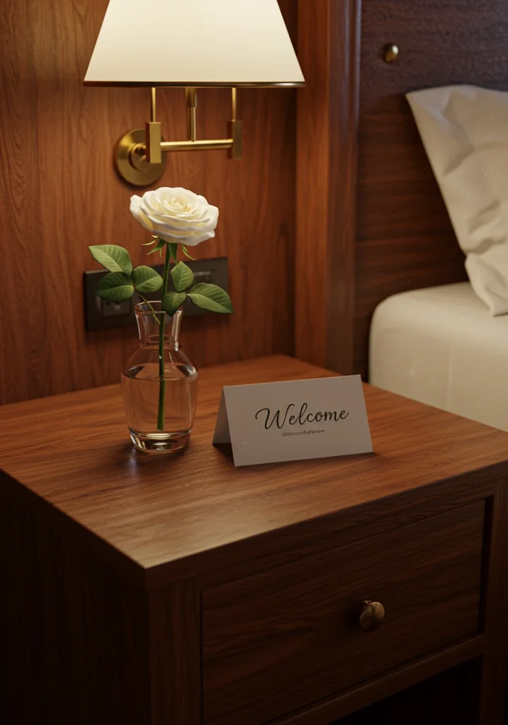 A core 2026 organic modern trend. A makeover should include biophilia (life). A simple low-maintenance green plant (like a snake plant or a ZZ plant) on the dresser or a small bud vase with a single fresh flower can instantly breathe life into a guest room and make it feel fresh and cared-for.