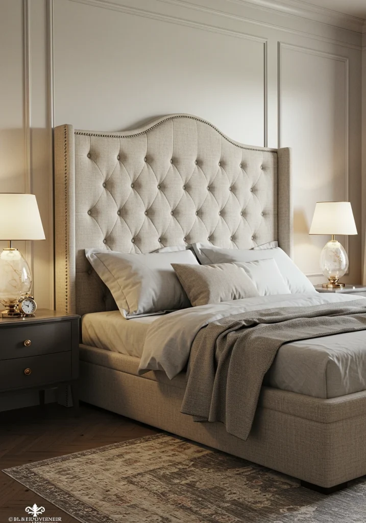 A makeover that adds instant coziness and luxury. A tall upholstered headboard in a beautiful fabric like a velvet or a textural linen provides a comfortable backrest for reading in bed and makes the entire room feel softer and more inviting.