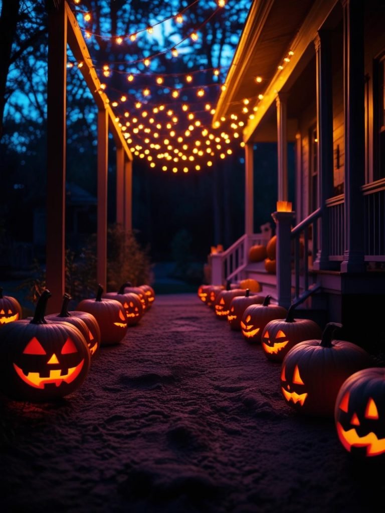 About This Image: This image captures the pure magic of simple lighting. The globe lights are the finishing touch that ties everything together. They create a warm and celebratory atmosphere that makes you want to linger outside. It’s a versatile look that bridges the gap between Halloween and the rest of the fall season, making it a wonderful investment in cozy evenings.