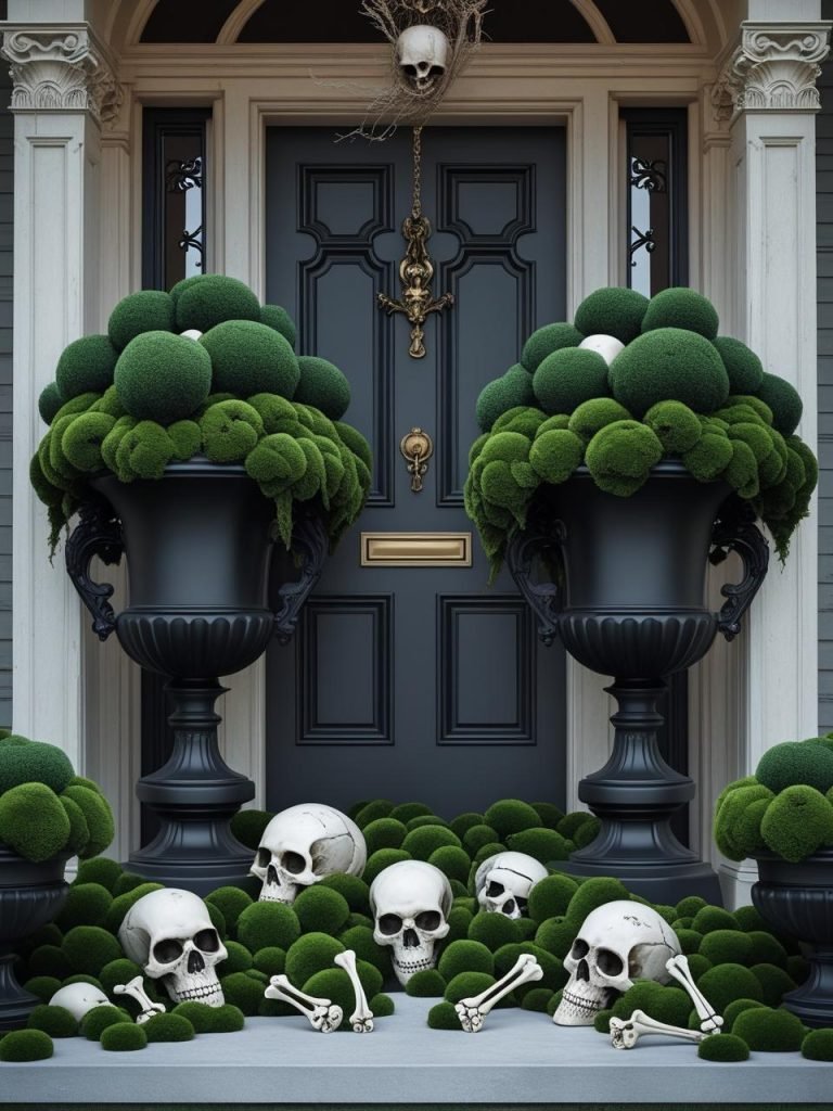 This is one of my favorite witchy-chic trends for 2025. Swap out your standard terracotta pots for black iron cauldrons. They are the perfect vessels for spooky branches or even deep purple mums, instantly adding a touch of spellbinding style to your porch.