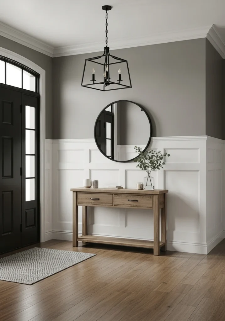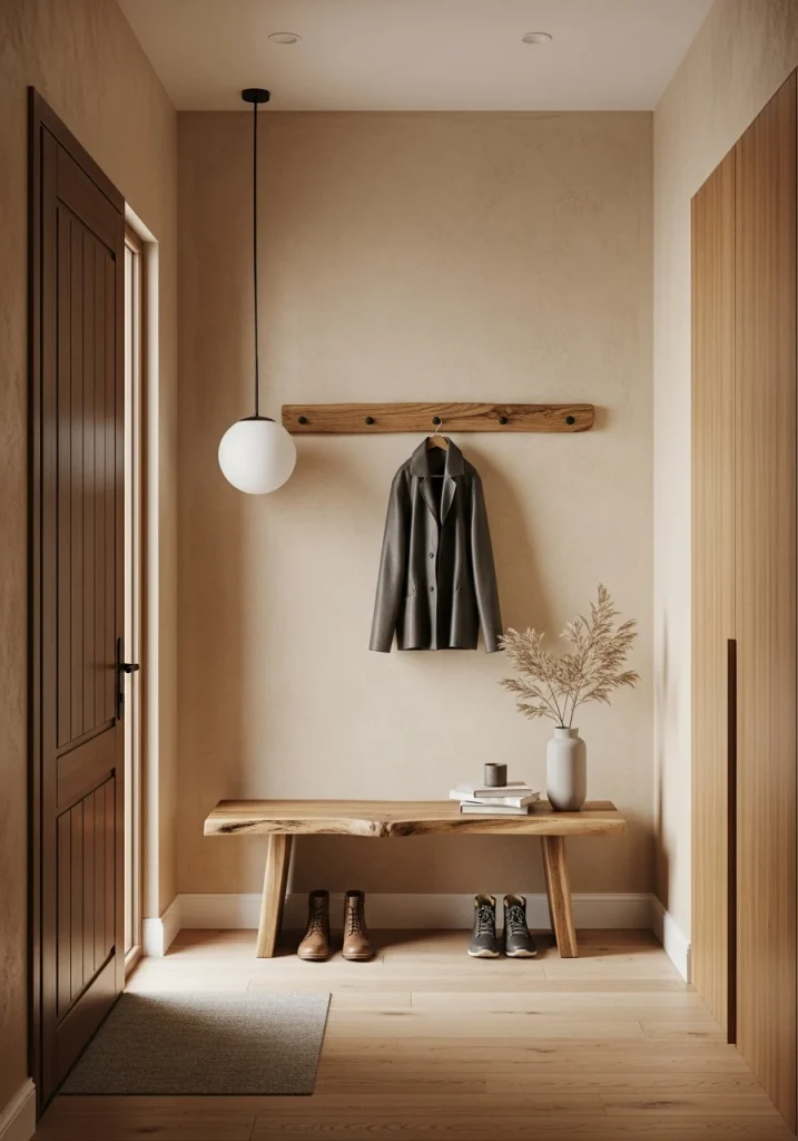 Move beyond flat paint. A major 2026 trend is to give your entryway walls a limewash or Roman clay plaster finish. This old-world technique adds a stunning organic and sophisticated cloud-like depth that feels both minimalist and warm as seen in your reference images.