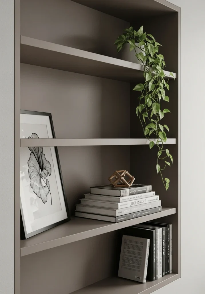 Your shelves are a key decorative feature. The 2026 makeover trend is to style your shelves with a curated artistic less is more approach. Mix your books (arranged both vertically and horizontally) with a few beautiful collected objects and most importantly negative space.