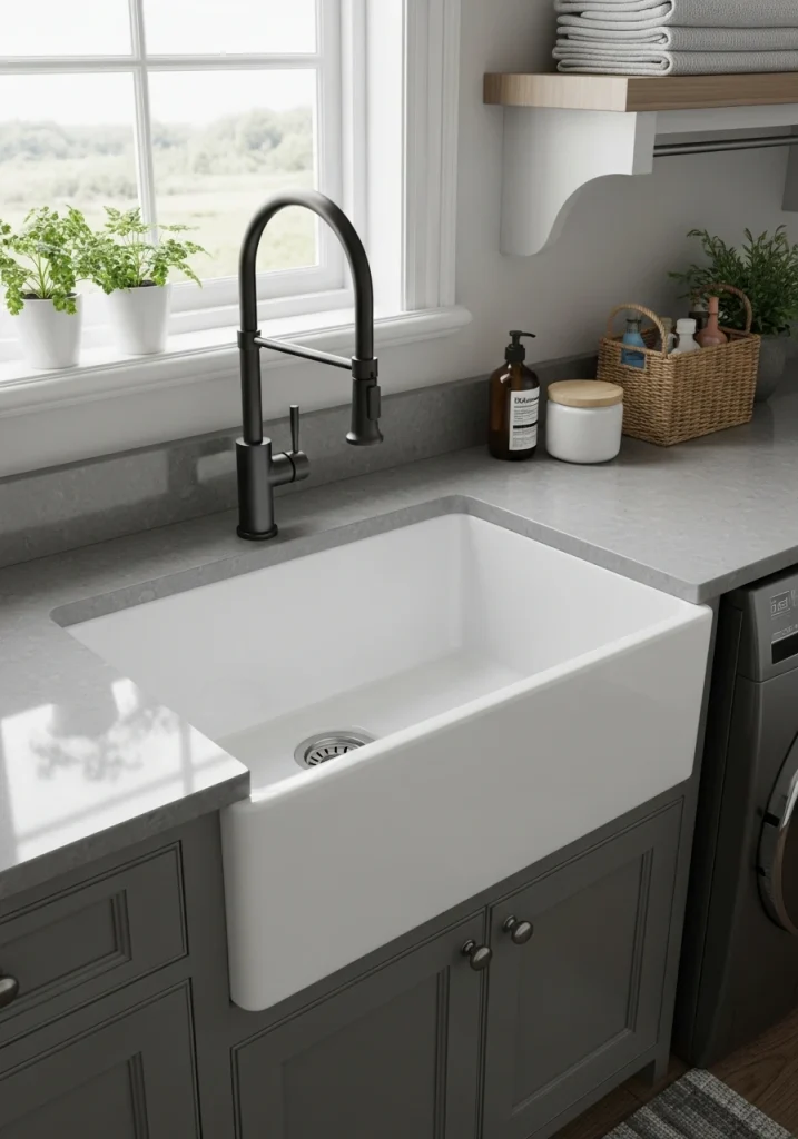 A deep, wide, single-basin sink is a must-have for a truly functional remodel. A classic, apron-front, fireclay farmhouse sink or a deep, modern, stainless steel, undermount sink is perfect for pre-soaking stained clothes, hand-washing delicates, or cleaning up messy spills.