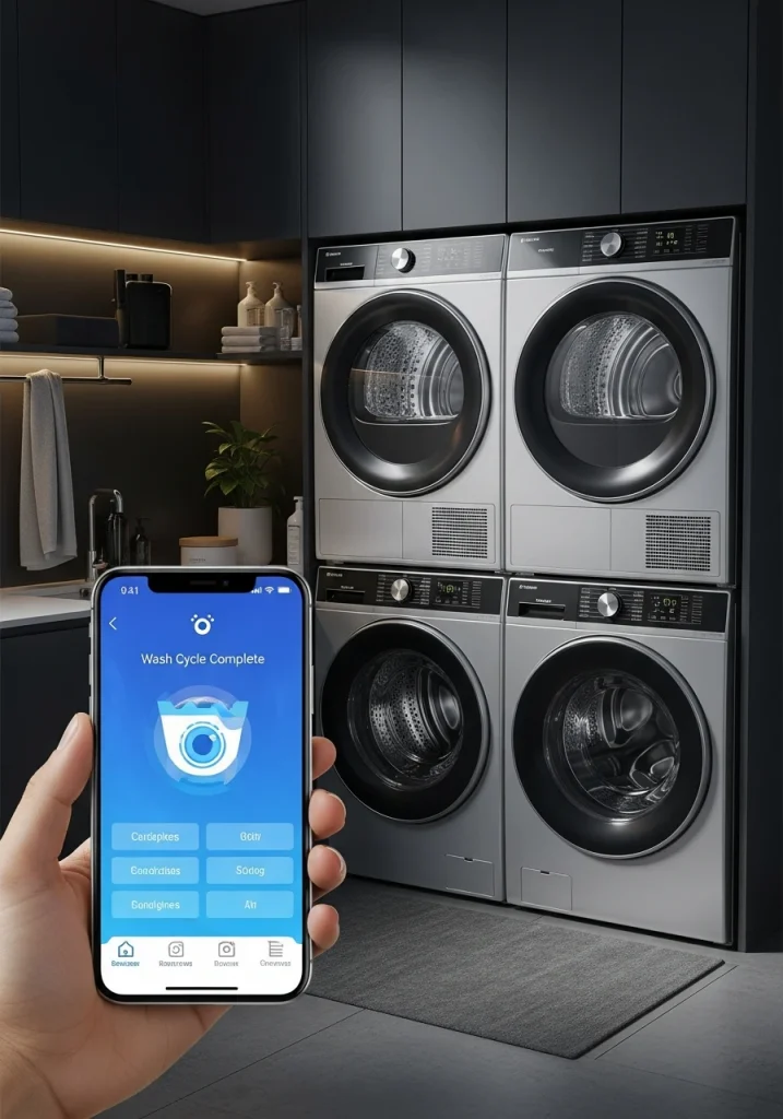A modern makeover is the perfect time to upgrade your appliances. The latest washers and dryers are Wi-Fi enabled, allowing you to start, stop, and monitor your laundry cycles from an app on your phone. You can get an alert when a cycle is finished, which prevents clothes from sitting and wrinkling.