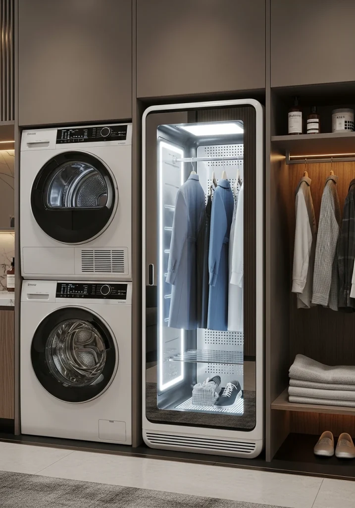 For the ultimate in high-end, luxury laundry care, a steaming cabinet (like the LG Styler or a Samsung AirDresser) is an innovative addition to your remodel. This is a separate, slim cabinet that uses steam to refresh, sanitize, and de-wrinkle delicate clothes (like suits or blouses) between washes.