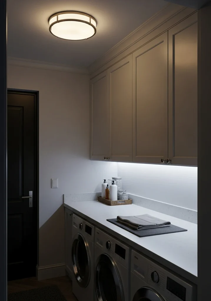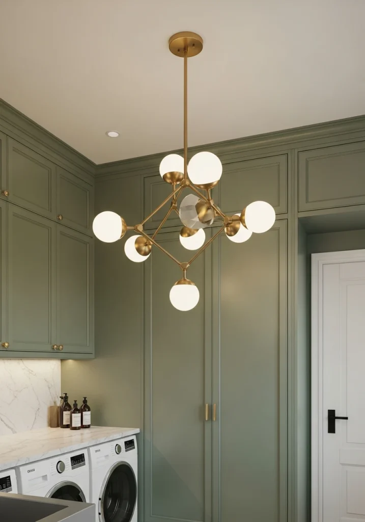 Don’t settle for a boring, builder-grade, “boob” light. A laundry room remodel is a perfect time to have a bit of fun with your lighting. A beautiful, statement-making, pendant light or a small, stylish chandelier can make the entire room feel more like a custom, designed space.