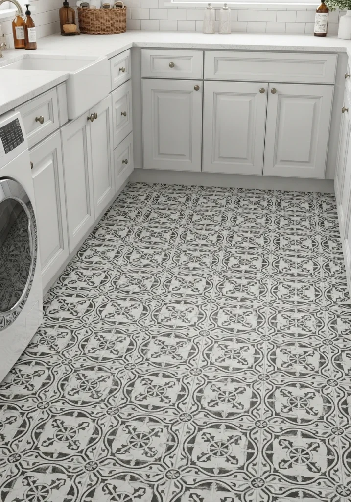 A laundry room is often a small, enclosed space, which makes it the perfect place for a bold makeover. Use a dramatic, patterned, “peel-and-stick” wallpaper on an accent wall. A large-scale floral or a fun, graphic print can turn a boring, functional room into a stunning, “jewel-box” surprise.