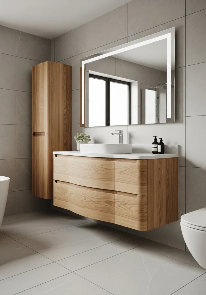 For a look that is warm, organic, and has a sophisticated, spa-like feel, natural wood cabinetry is a beautiful 2026 trend for your remodel. A light, natural oak or a white oak is a top choice that feels very Scandinavian and serene, as seen in your reference images.