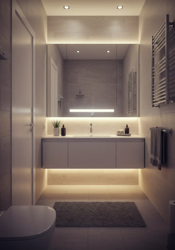8. Feature a Floating Vanity with Under-Cabinet Lighting