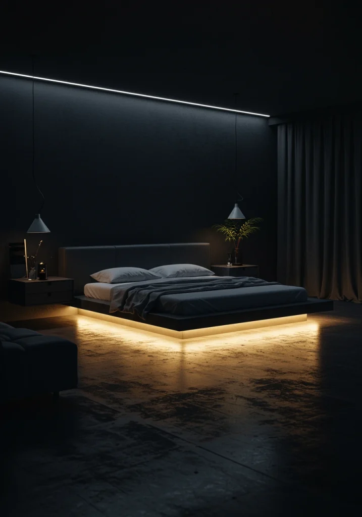 10. The “Floating” Bed with LED Glow (Smart Design)