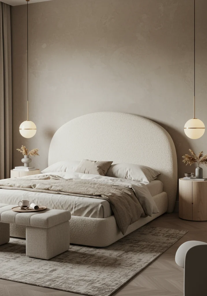 14. The “Fluid Geometry” Curved Headboard (2026 Trend)