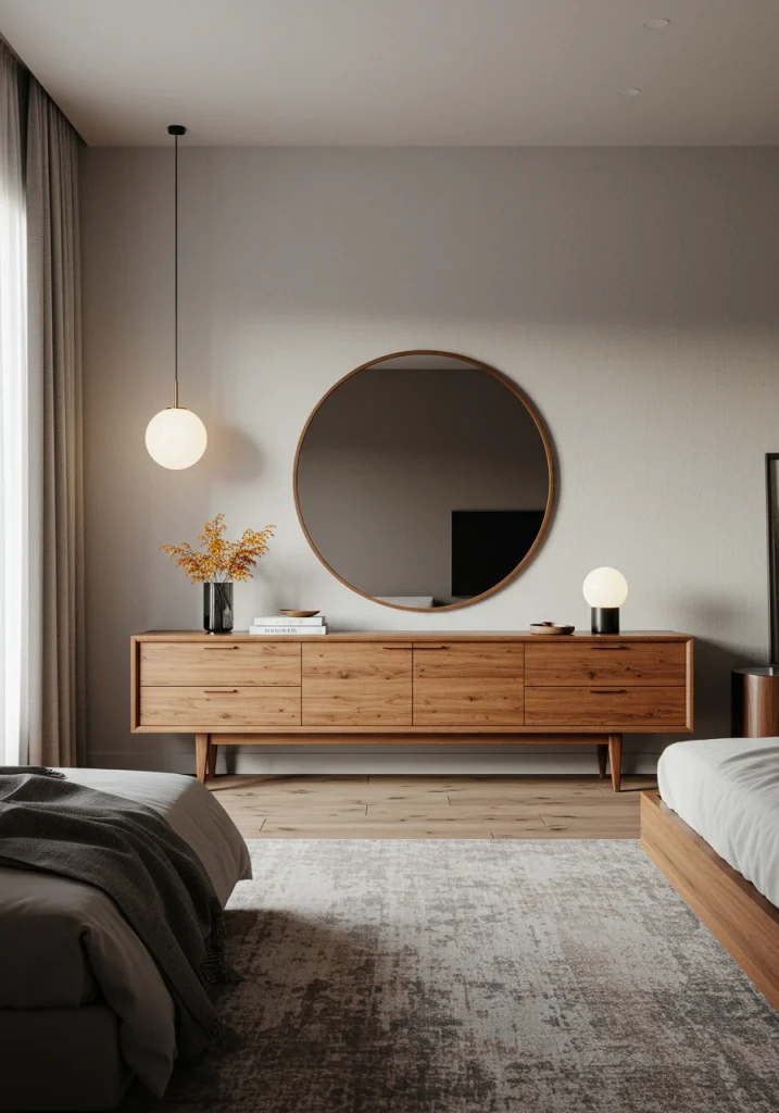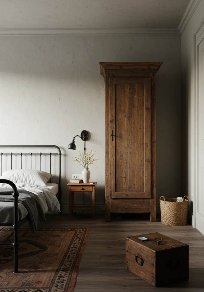 A 2026 collected trend. Instead of built-in closets (Idea #20) this makeover uses a single freestanding piece of furniture for storage. A beautiful antique wooden armoire or a minimalist modern wardrobe can act as a sculptural statement piece in an otherwise empty room.