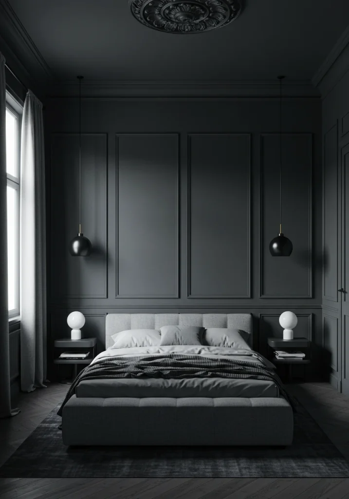 A minimalist room doesn’t have to be white. A modern 2026 trend is to color drench a room in a single moody color. Painting the walls trim and ceiling in a deep matte charcoal gray or forest green creates an enveloping cozy cocoon that is both dramatic and surprisingly minimalist.